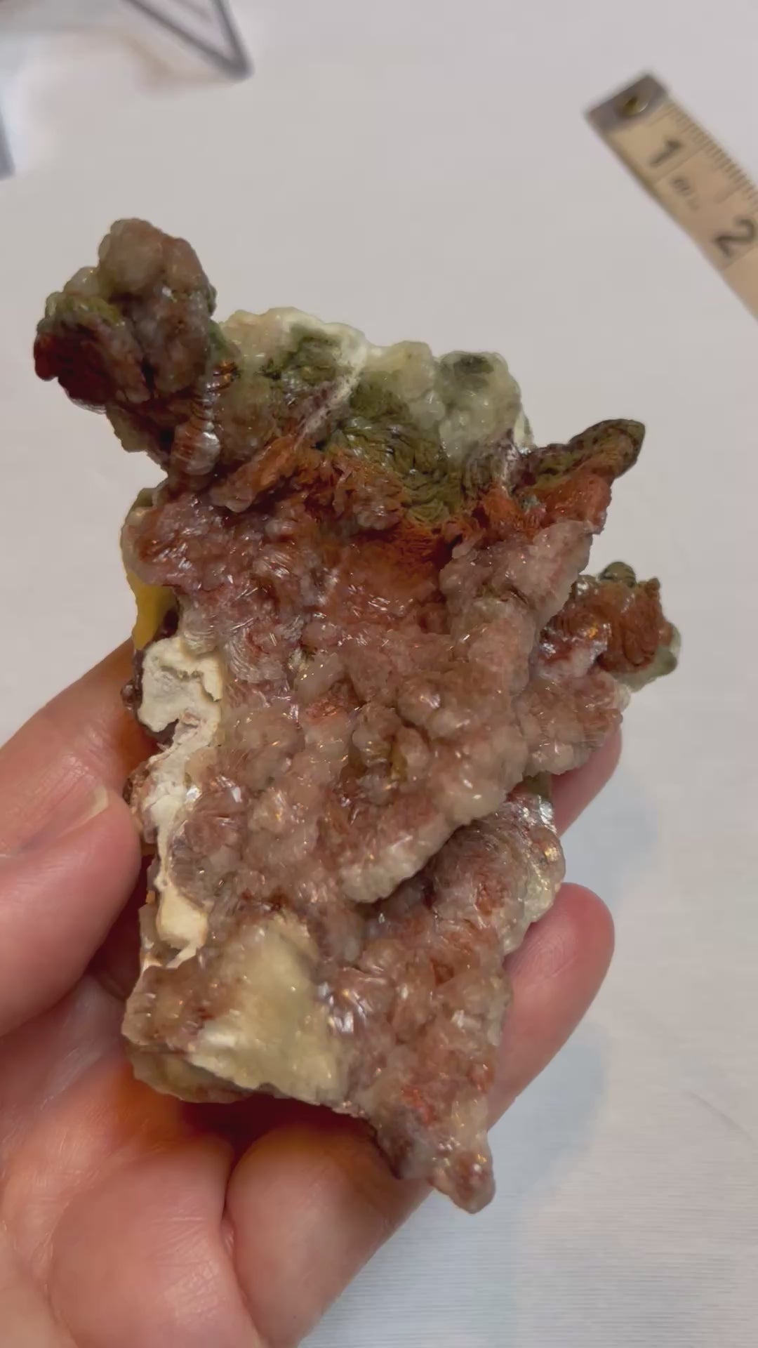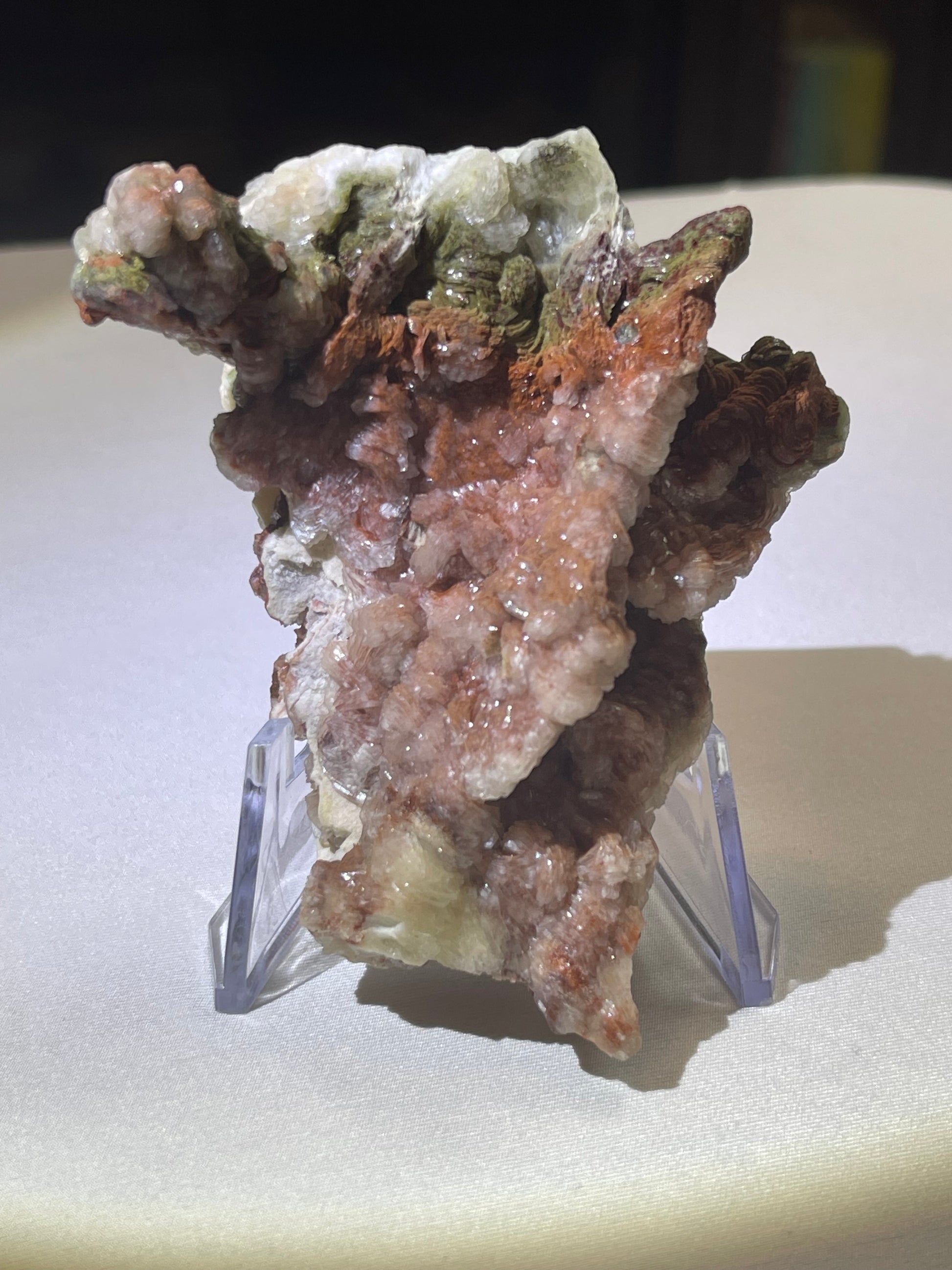Red Stilbite Specimen. This beautiful Earthy Raw Crystal specimen has layers of Stilbite flower petals moving from pink to red to green. This item comes with the acrylic stand. A very unusual rare zeolite specimen. This Stilbite crystal weighs 118 grams. Measurements are in the photos. You will receive the exact specimen in the photos.