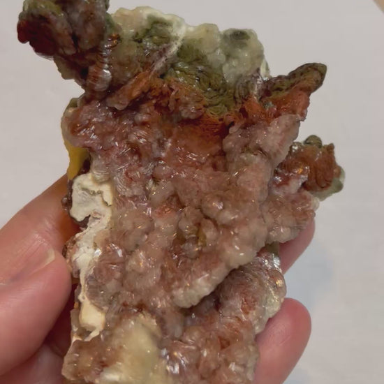 Red stilbite is spiritually associated with emotional grounding, healing past trauma, and connecting with ancestors. It's believed to help clear family lineage and reveal ancestral wisdom, promoting healing and bringing blessings to current and future generations. Additionally, red stilbite is thought to enhance creativity, open intuition, and provide guidance and direction.